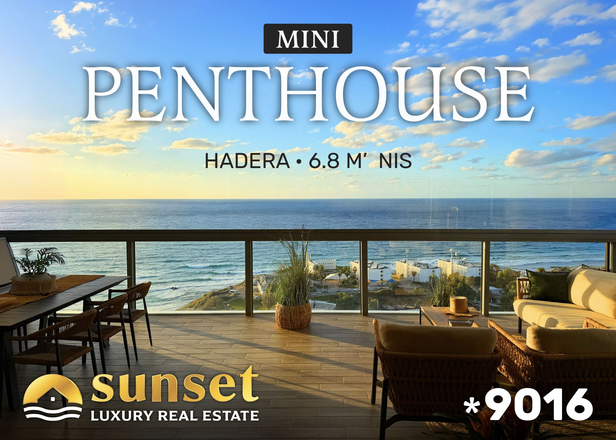 🌅 High-End Mini Penthouse – White Coast Project, Hadera 165 sqm | 22nd Floor | Full Sea & Sunset Views | Luxury Facilities This stunning beachfront mini penthouse delivers everything you need to enjoy the very best of Israel’s Mediterranean lifestyle. Spanning 165 sqm on the 22nd floor, in one of the region’s most luxurious seafront towers, this home offers wide open horizons, dramatic sunsets, and a truly elevated living experience. ✨ Property Highlights Built Area: 165