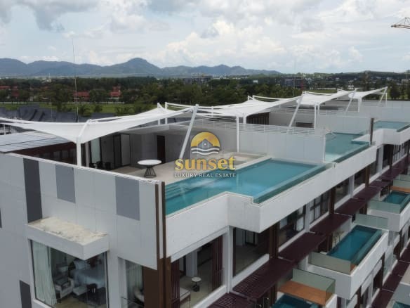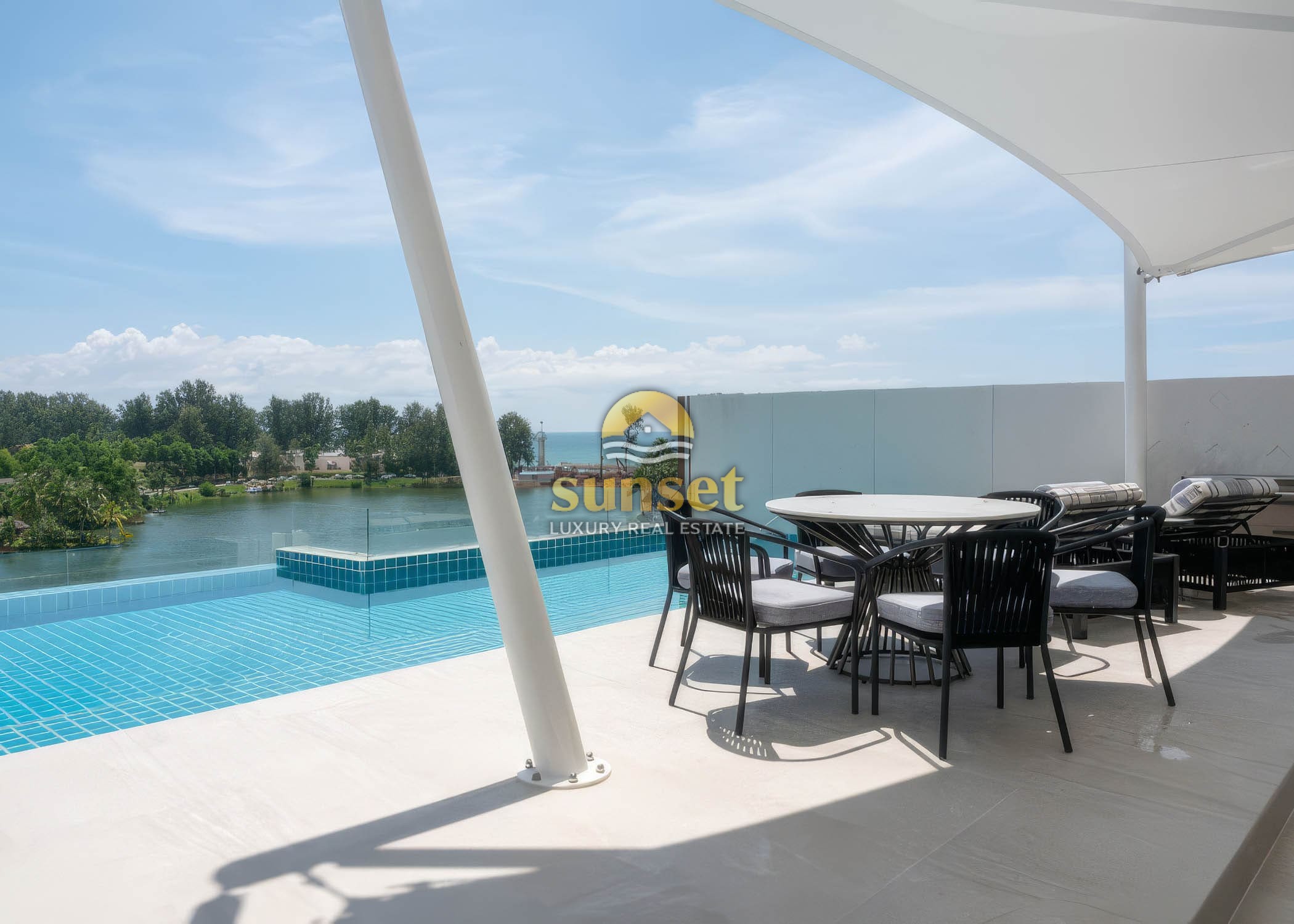This brand-new 316 sqm duplex penthouse occupies the entire top floor (6th) of an exclusive development and offers breathtaking panoramic views of the Andaman Sea, the lagoon, and surrounding mountains from