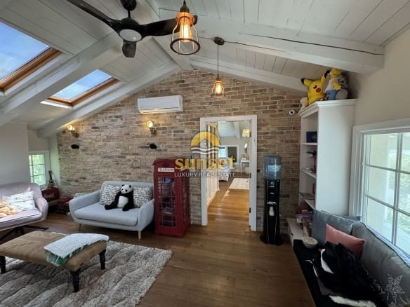 - 🪵 20×20 cm exposed wooden beams + brickwork + designer lighting for ultimate warmth & coziness.