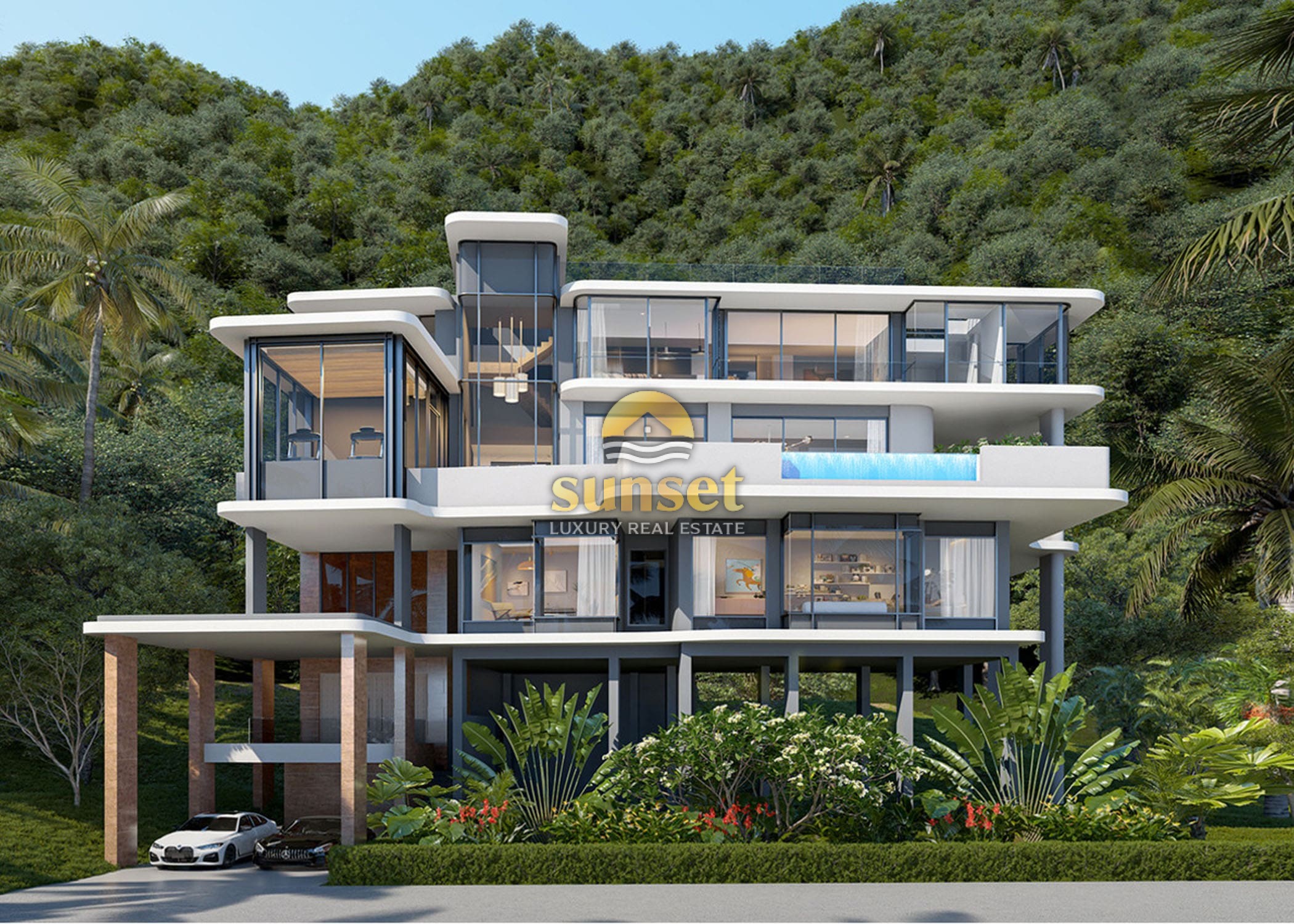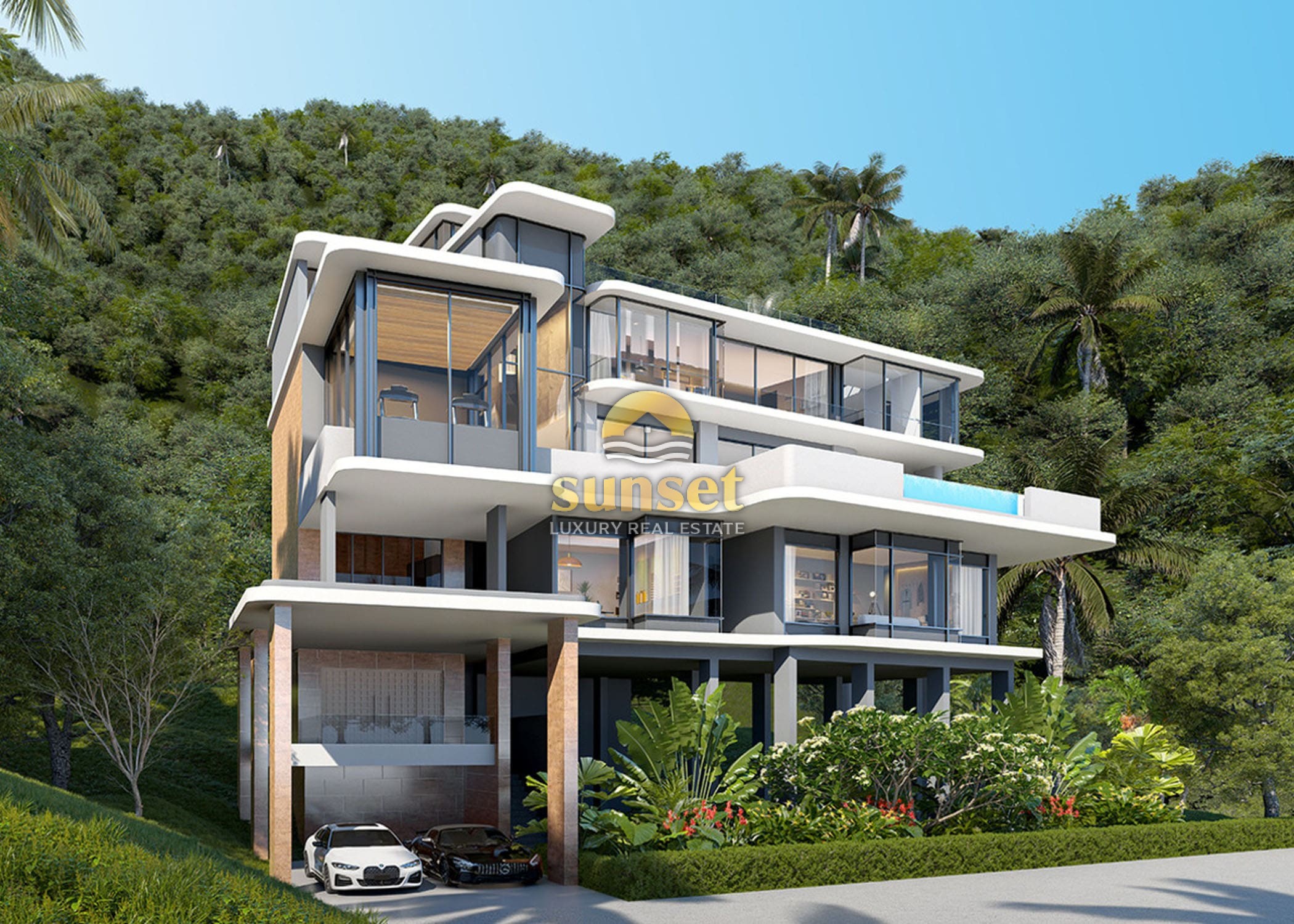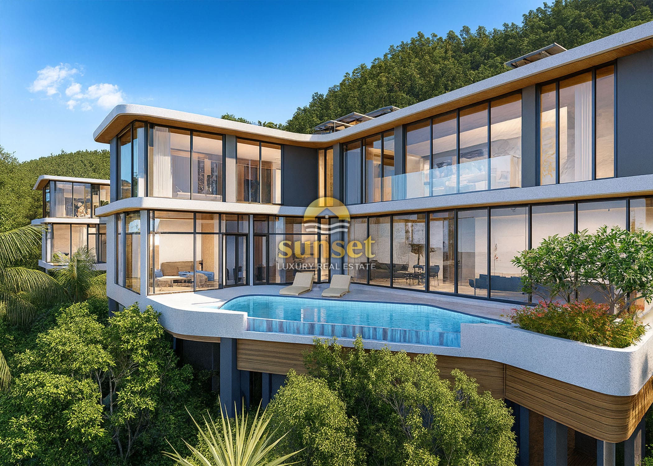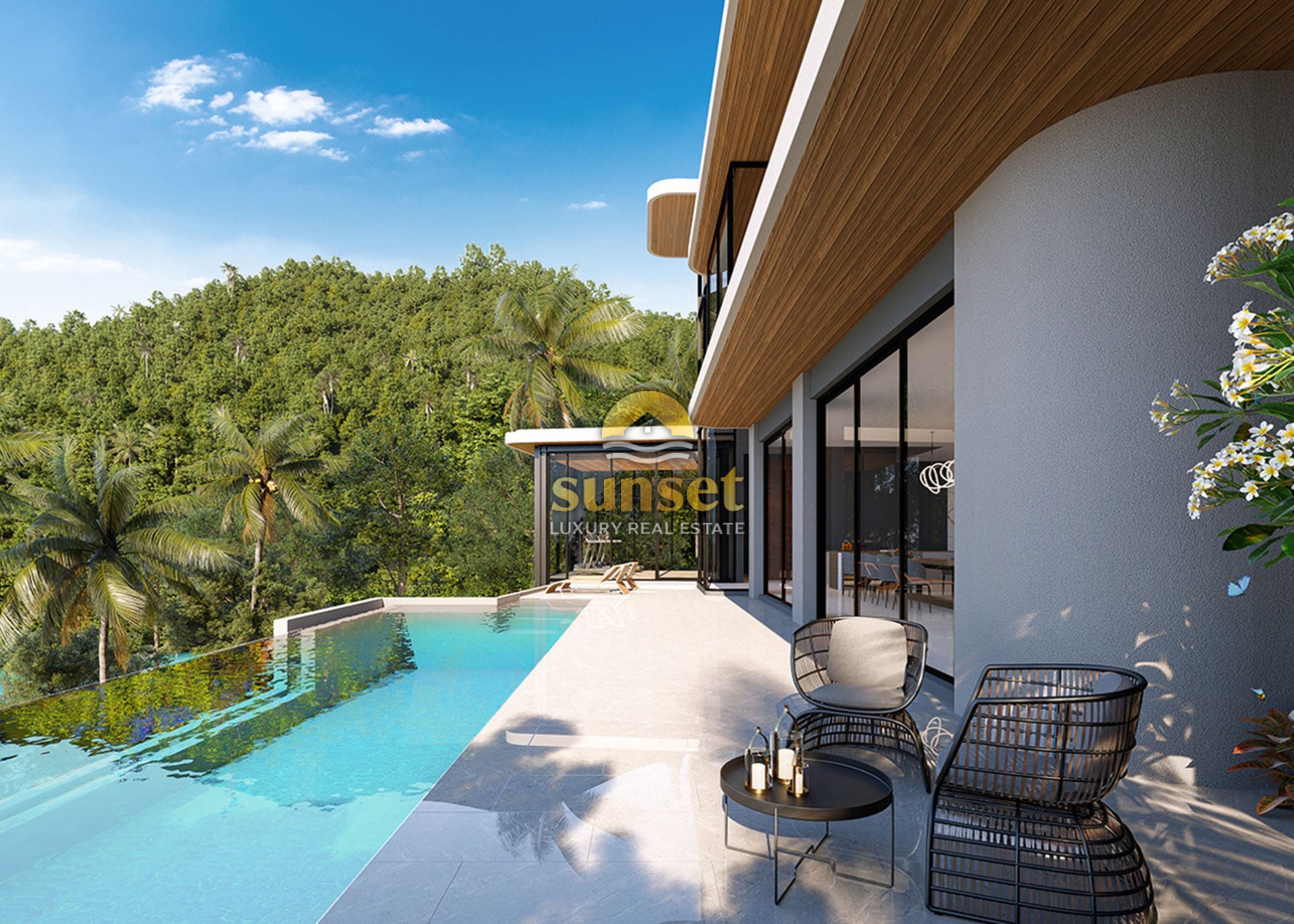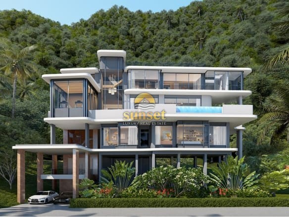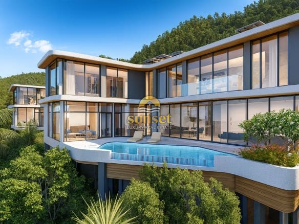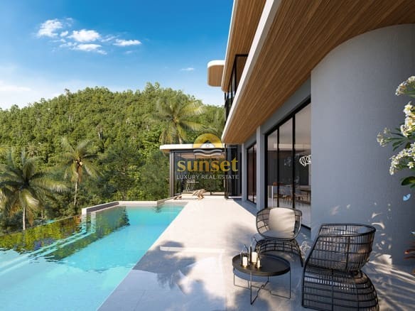 Experience tropical luxury at its finest in this exclusive collection of modern hillside pool villas, surrounded by lush green mountains and just minutes from the pristine sands of Nai Thon Beach.