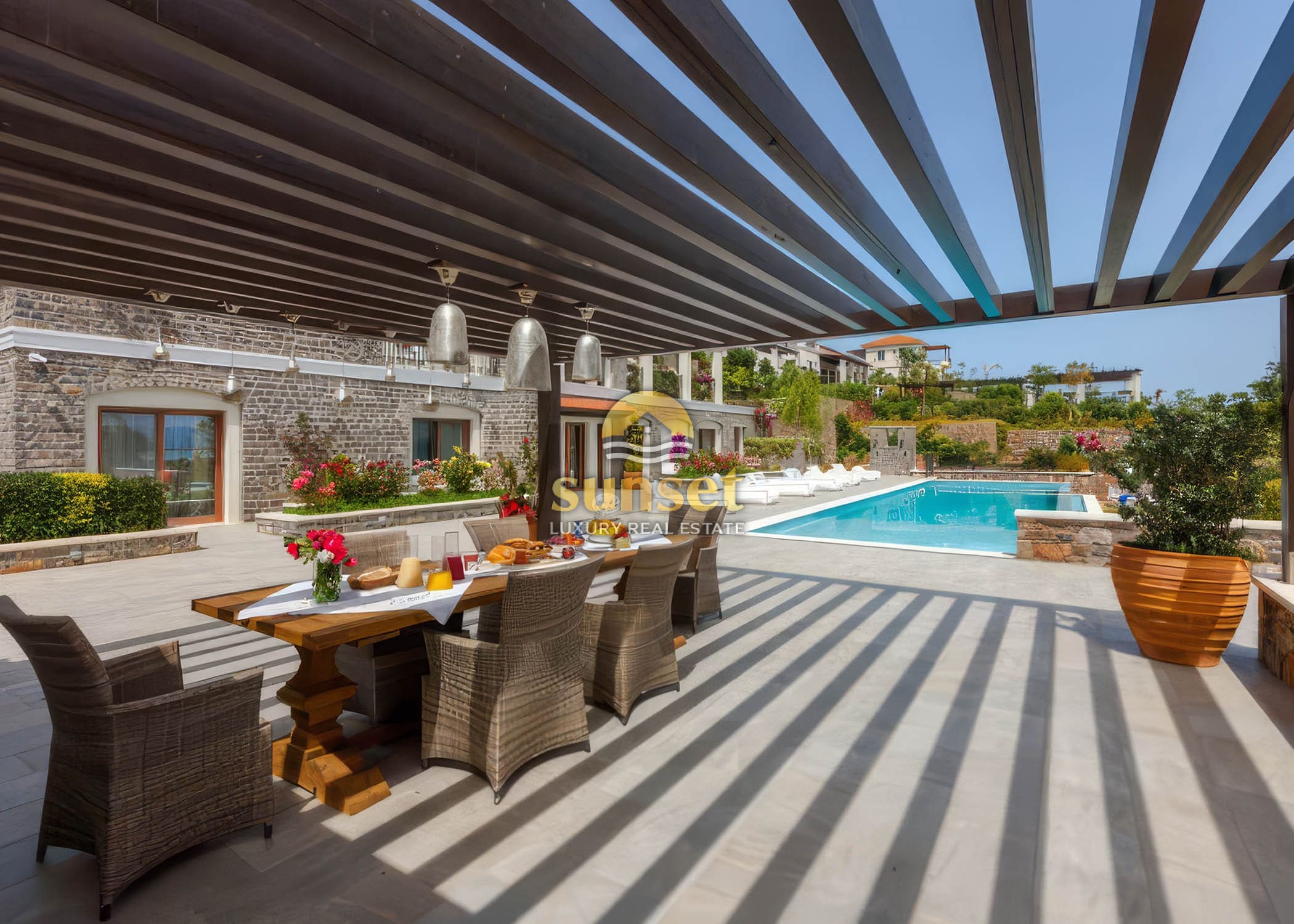 Positioned on an expansive 4,000 sqm private plot, the residence spans approximately 420 sqm of built space, offering scale, discretion, and uninterrupted sea views in a setting defined by serenity and prestige.