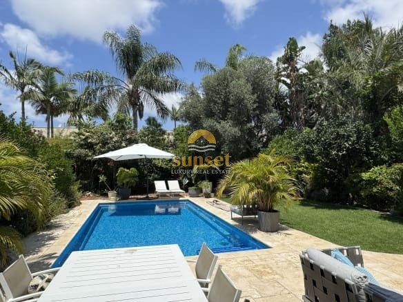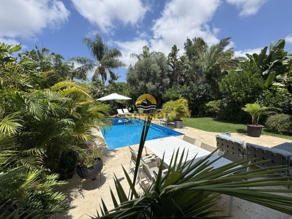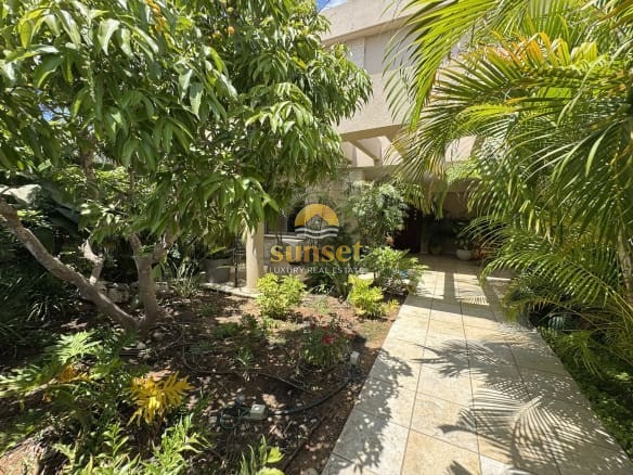 Tropical Style House — Fully Renovated & Ready to Enjoy This tropical, fully renovated home is everything you could wish for. From the moment you step through the street gate, you’re greeted by the feeling of entering your own private tropical garden — a lush oasis of palms, greenery, and vibrant life. Entrance Floor – 120 sqm A spacious living room and open kitchen flow seamlessly toward the marvelous garden and pool. The living room